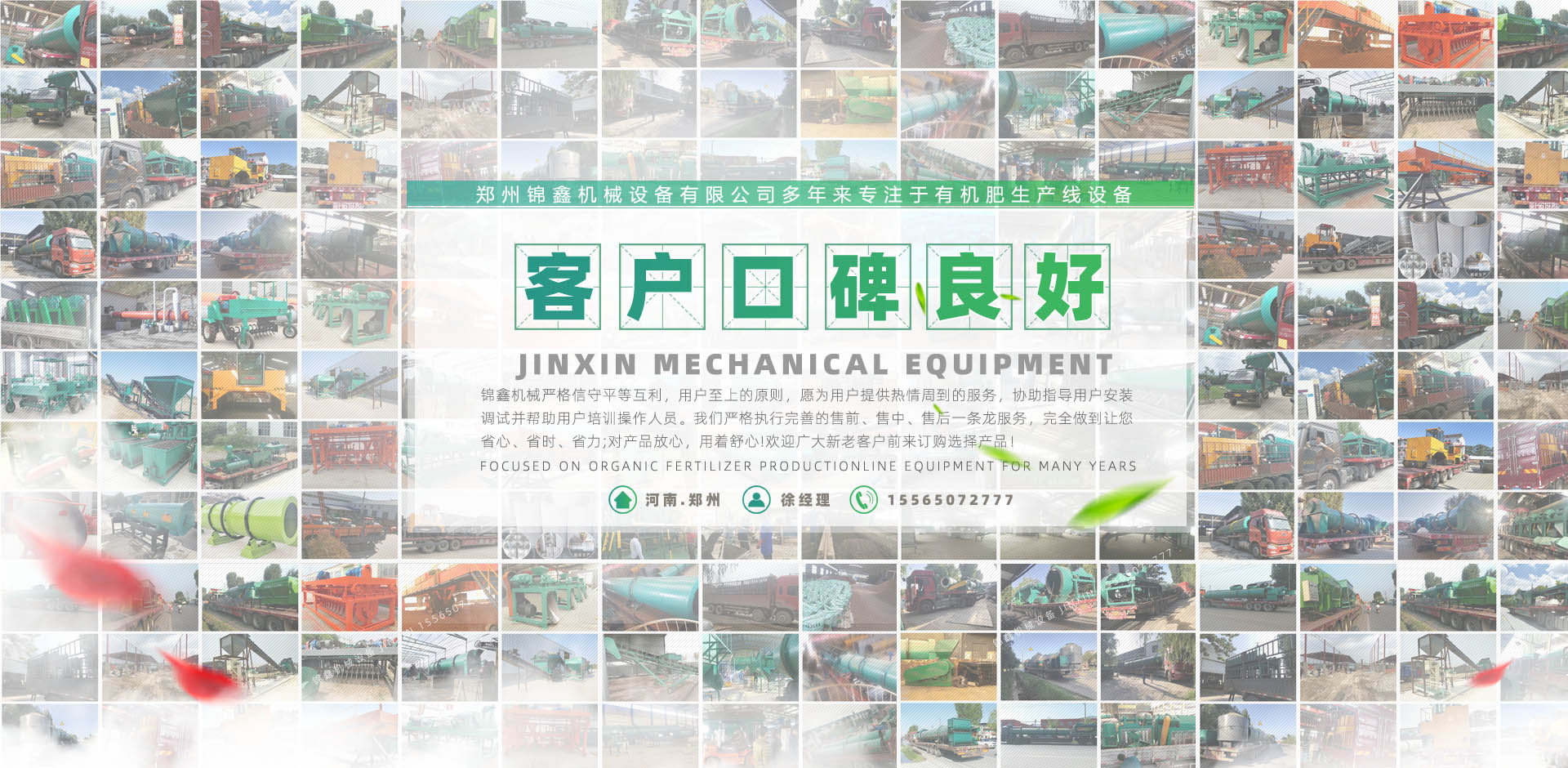 鄭州錦鑫機(jī)械設(shè)備有限公司,位于機(jī)械之鄉(xiāng)的河南省滎陽(yáng)市,它交通便利,連霍高速公路、鄭州西南繞城高速、隴海鐵路、鄭西客運(yùn)專線貫穿全境,南水北調(diào)、西氣東輸在這里交匯。   公司有技術(shù)團(tuán)隊(duì)為企業(yè)生產(chǎn)肥料加工設(shè)備,有的合作伙伴,科學(xué)、規(guī)范的客戶培訓(xùn)體系;還有積極健康的企業(yè)文化,不斷創(chuàng)新的管理體制和經(jīng)營(yíng)模式和日益完備的經(jīng)銷網(wǎng)絡(luò)。它交通便利,310國(guó)道、連霍高速公路、鄭州西南繞城高速、隴海鐵路、鄭西客運(yùn)專線貫穿全境,南水北調(diào)、西氣東輸在這里交匯。   鄭州錦鑫機(jī)械設(shè)備有限公司是生產(chǎn)有機(jī)肥設(shè)備機(jī)械的企業(yè),產(chǎn)品:有機(jī)肥設(shè)備,有機(jī)肥造粒機(jī),復(fù)合肥設(shè)備,復(fù)合肥造粒機(jī),新型有機(jī)肥攪齒造粒機(jī),對(duì)輥擠壓造粒機(jī),有機(jī)肥生產(chǎn)線,有機(jī)肥加工設(shè)備,復(fù)合肥生產(chǎn)設(shè)備,有機(jī)肥造粒設(shè)備,雞糞烘干機(jī),轉(zhuǎn)鼓造粒機(jī),bb肥設(shè)備等遠(yuǎn)銷各地,品質(zhì)深受肯定! ...